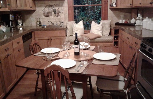 The newly upgraded kitchen was done in an early 1900 wine country theme, however with modern appliances. The appliances included are: Gas Range, Microwave, Dishwasher, Garbage Disposal unit, Combo Freezer Refrigerator, Toaster, Coffee Maker, and all flatware, silverware, Calphalon cookware and utensils.
