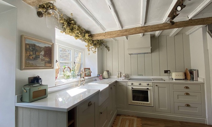 The cottage consists of a kitchen with oven, induction hob, microwave, fridge/freezer, washing machine, slimline dishwasher, coffee maker, and dining table and a living/dining room with woodburning stove, TV, and dining table. The bedrooms consist of a double and two singles. There is a bathroom with clawfoot bath, shower over, basin, heated towel rail, and WC. WiFi, fuel, power, starter pack for woodburning stove, bed linen, and towels included in the rent. Outside, there is a non-enclosed front patio with a bench, an enclosed rear courtyard with decking and furniture, plus off-road parking available. Sorry, no pets and no smoking. Shop and pub 0.1 miles, river 0.2 miles. All of this and so much more with a stay at the welcoming the cottage. Note: Step up from living/dining area to kitchen. Due to the traditional nature of the property, the stairs are steep and narrow, therefore, the property may not be suitable for individuals with limited mobility. This property only accepts a minimum of 2 night stays
