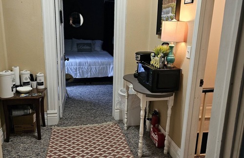 A private Cozy Cottage Room in the upstairs of our house built in 1900. Access to coffee maker n the fixings, microwave and mini fridge, as well as a few snacks.