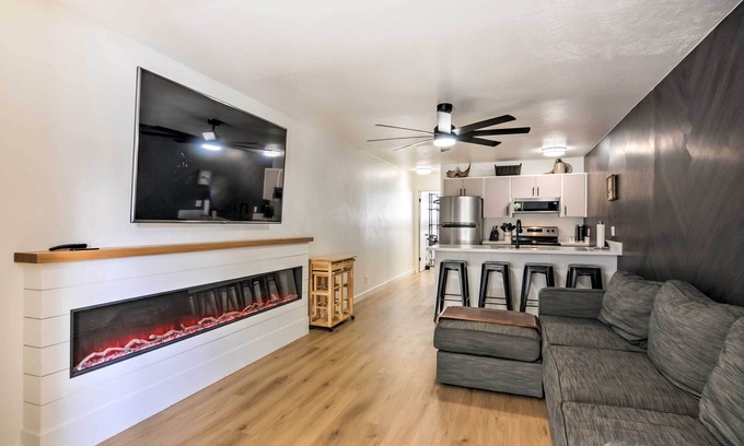Hop off the powdery slopes and into this modern 1-bedroom, 1-bath vacation rental located at Eagle Point Resort, and minutes from hiking trails, and all of Beaver’s downtown charm. From lounging on the communal deck to relaxing by the electric fireplace, this condo is the ideal basecamp for all your Tushar Mountains adventures. After exploring local shops or a day trip to Bryce Canyon National Park, head back to stream a movie on the Smart TV and end the night with s’mores by the fire pit.