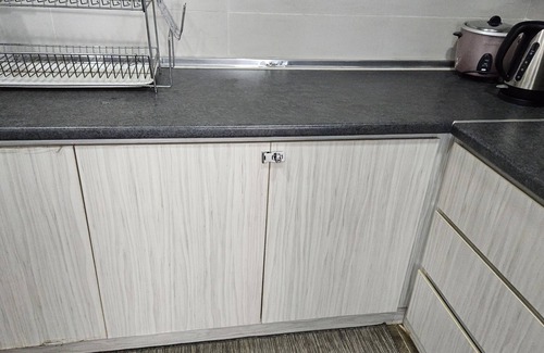 Full kitchen with fridge, microwave, induction cooker. Basic cooking utensils are also provided. Huge dining table and chairs for 6 people.