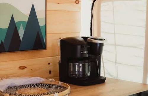 The Creekview safari tent is located inside Campsite 1. Each campsite has 4 tents. Campsite 1 includes a firepit with 12 Adirondack chairs, private covered pavilion with dining table, outdoor sofa and chairs, gas grill, pizza oven, and blackstone and water spigot. There is a hot tub and sauna and corn hole for your use as well as parking. A large cooler is provided at your tent to use. There is wifi and a tv in each tent as well as a drip/keurig coffee maker with complimentary coffee pods. The kitchenette consists of mini fridge, sink, and microwave. Basic, plastic plates, bowls and cups provided. Linens and bath towels are provided.
