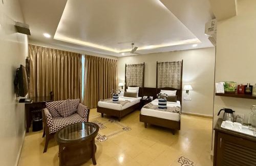 The Crown Goa offers 5-star accommodations with breathtaking views of Mandovi River, 6-minute walk from Casino Royale Goa. It features an outdoor pool, a day spa and 2 restaurants. The spacious rooms include free internet. The Crown Goa Hotel is located in Panaji, the capital of Goa. The beautiful Miramar and Caranzalem beaches are just a 10-minute taxi ride away. It is 3.1 mi from the Salim Ali Bird Sanctuary and 9.3 mi from the 17th-century Fort Aguada. Guests can relax in air-conditioned comfort and enjoy views of the garden, city or river. All rooms include a flat-screen TV with cable channels and a refrigerator with mini-bar. Entertainment options at The Crown include children's park along with indoor games. Sightseeing can be arranged at the tour desk. The poolside Hanging Garden Restaurant serves barbecue and Indian dishes with river views. Harbor Cafe offers international cuisine. Room service and a breakfast buffet are available.