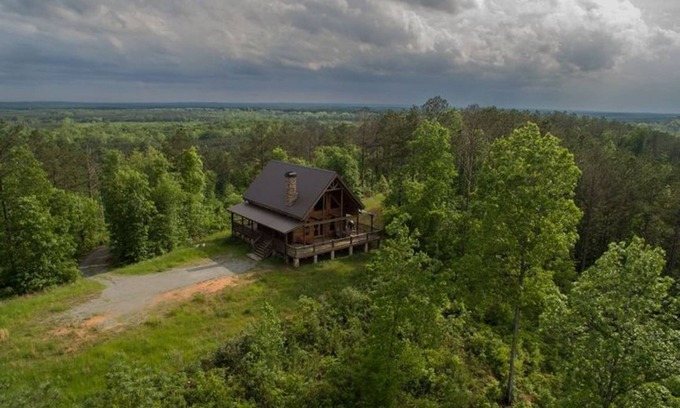 This solid log cabin has awesome views for 7 miles to the North of the Pine Mountains and 7 miles to the South. Wrap around porches and decks. The house is on 175 acres of timberland with only one other cabin and no other houses around.