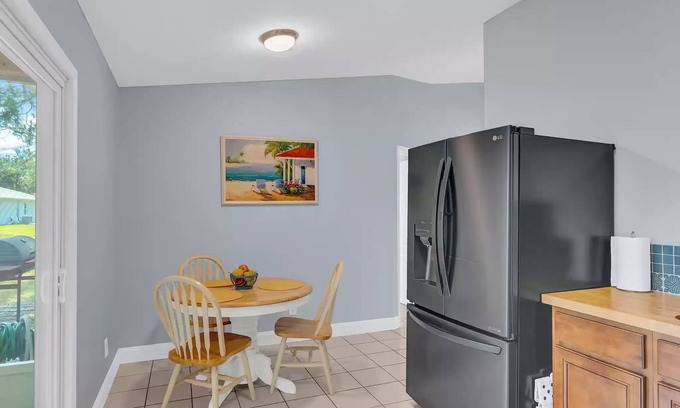 Welcome to a spacious 2 Bedroom, 1 Bathroom Duplex with a lovely living room where you can relax and play a game of chess on the big chess coffee table or watch your favorite show on the 65” ROKU TV. Local channels available. Or relax on the screened in back porch after a day at the Wabasso Beach (5.9 miles) Master King Bedroom have a 43” ROKU TV. Enjoy a BBQ on the grill in the big backyard.
