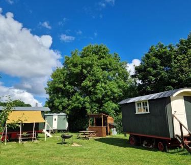 The Delkin Shepherds Huts Castle Combe offers accommodations in Castle Combe, 8.4 miles from Lacock Abbey and 14 miles from University of Bath. Private parking is available on site at this recently renovated property. The Circus Bath is 15 miles away and Royal Crescent is 15 miles from the luxury tent. There is a seating area, a dining area, and a kitchenette complete with a fridge, a stovetop, and kitchenware. The property has an outdoor dining area. There is a garden with a barbecue at this property, and guests can go cycling and hiking nearby. Bath Abbey is 15 miles from the luxury tent, while Bath Spa Train Station is 15 miles from the property. Bristol Airport is 29 miles away.