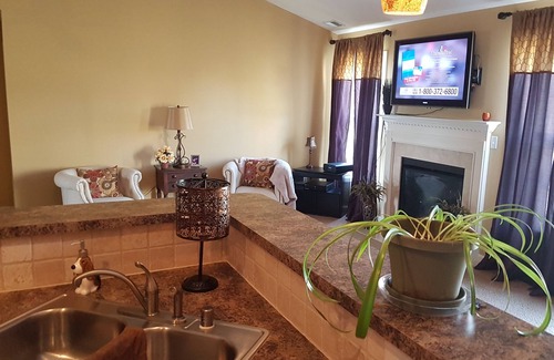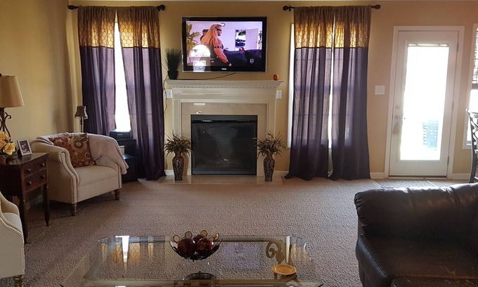 The large family is perfect for gathering to plan your Derby festivities or just chill and watch tv after a full day of activities. It has vaulted ceilings with a gas fireplace, ceiling fan, leather couch, 42" TV, glass coffee/end tables.