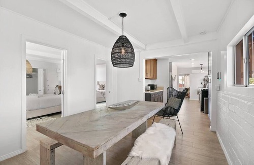 Retreat to the desert for an unforgettable stay in our Joshua Tree home. This cozy spot is the perfect space for expanding your mind beyond the confines of the 21st century. Enjoy the luxury amenities on our property, take a short walk into downtown Joshua Tree to eat, drink and shop, or enter the park for a one-of-a-kind encounter with the natural world.