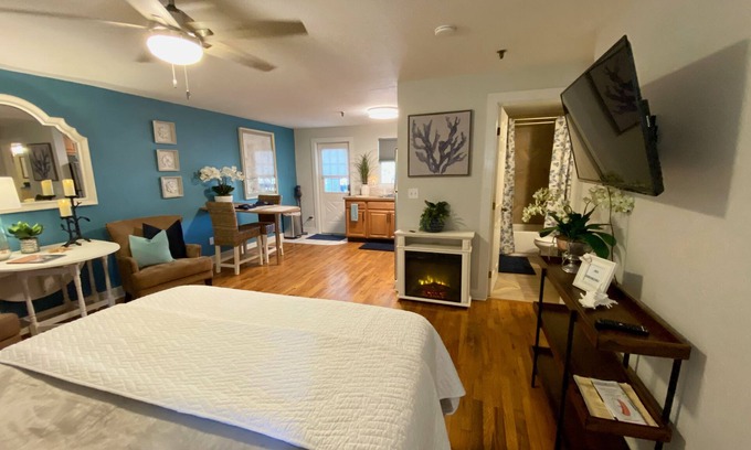 Featured in the Hallmark movie "Love in the Sun", The Downtown Studio apartment is on the second floor of the original Safety Harbor Hotel on Main Street, built in 1914. The flat features all the comforts of home. The Inn is right in the center of downtown Safety Harbor, 15 minutes from both Clearwater (PIE) and Tampa International Airport (TPA) , 10 miles to the white sandy beaches of Clearwater, 17 miles to St.Petersburg. This is a perfect home base for your Gulf adventures. You will receive a keypad code by noon the day of your arrival upon booking.