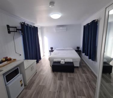 BathroomConditioner, Towels, Toilet, Free toiletries, Body soap, Shower, Shampoo, Toilet paper, Towels/Sheets (extra fee), Private bathroomMedia & TechnologyTV, Streaming service (like Netflix), Flat-screen TVGeneralIron, Ironing facilities, Heating, Smoke Alarm, Air conditioningKitchenMicrowave, Refrigerator, Kitchenette, Toaster, Wine glasses, Kitchenware, Electric kettleViewViewBedroomLinensOutdoorsOutdoor furnitureAccessibilityToilet with grab rails, Roll-in shower, Shower chair, Entire unit wheelchair accessibleFood & DrinkBottle of waterRoom AmenitiesSocket near the bedPhysical distancingSingle-room AC for guest accommodation |
