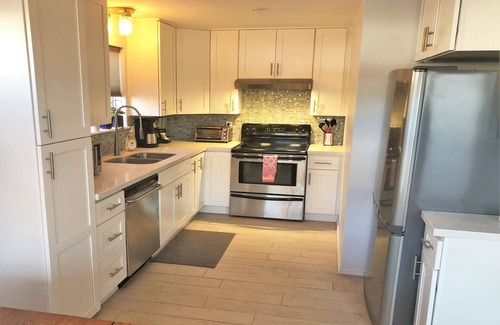 Although the location is one of the best selling points for this home, the house itself is a gem, too! It has recently been completely renovated and modernized to be a super-unique residence that stands out in a sea of plain vacation rentals in the area. The entire living space is above ground, so there's no dark basement rooms. There are two bright bedrooms on the main floor and one huge bedroom with 7 windows on the second floor. Each floor has its own FULL bathroom and there is a modern kitchen that's fully stocked with everything you'll need to cook full meals. Free off-street parking for two vehicles as well as unlimited free street parking. Free ultra high-speed wifi.