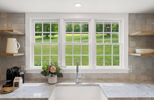 A sprawling 5 acre landscape with views. 3-Bedroom, 2.5 Bath Farmhouse that has been fully renovated. An open concept light filled home including a Kitchen with dinning area, Living Room with Fireplace and Sunroom that opens up to an outdoor patio. Upstairs are 3 Bedrooms, 2 Queen beds and 1 flex full. There is also a loft space, and 2 Full Baths with a bathtub.