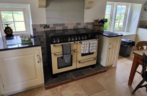 Amenities: Oil central heating. New electric range oven, microwave, fridge, freezer, washing machine and dishwasher. TV with Freeview, DVD, Star-Link WiFi, Bed linen and towels inc. in rent. Highchair, travel cot and stairgate available. Ample off-road parking. Rear garden with lawn, patio, hot tub, barbecue and new garden furniture. Well-behaved pets welcome. EV charger. Sorry, no smoking. Shop 2.4 miles, pub 2.2 miles. Note: Lowfield Farm is non-working, although there are livestock in the surrounding fields - please be mindful of and keep your dogs under control (as the garden is not fully enclosed) and clean up any mess in the gardens. Note: This farmhouse is reached via a single track road, please take care. Note: No day visitors can be accommodated. Note: This property can be booked with Ref 1079765 together sleeping up to 32 guests