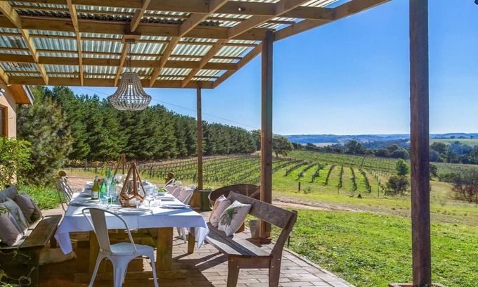 Cheap and cheerful, situated atop a hill overlooking 52 acres of magnificent rolling country with the sweet sounds of wild birds, the gentle mooing of cows; the heady beauty of grape vines. This property is the perfect place to relax and catch your breath. Take a walk around the property and take in the spectacular views and wildlife.