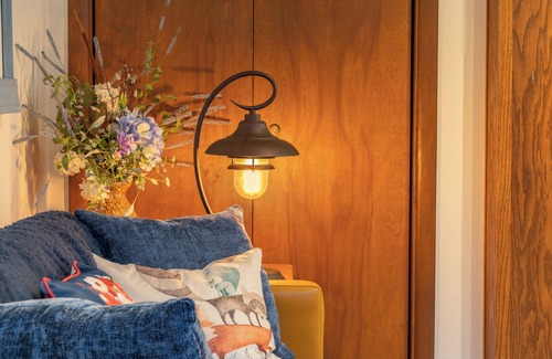 This two level contemporary home features over 15 light and bright windows, spiral stair case, free parking, wifi, loft style bedroom, dining room table, boardgames, new 55' Roku TV, vaulted ceilings, exposed beams, and a couch you will just melt into!
