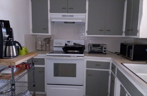 Basic Supplies: We provide a starter set of essentials (soap, toilet paper, coffee, etc.), but for longer stays, you'll want to stock up. Walmart is just 2 miles away.