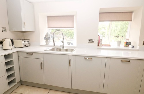 Amenities: Gas central heating with woodburning stove. Oven, hob, microwave, fridge/freezer, washing machine, dishwasher. Fuel and power inc. in rent. Bed linen and towels inc. in rent. Highchair and stairgate available upon request. Private driveway parking for two cars. Garden at back of property with lawn, patio, firepit, barbecue, hot tub and furniture. Two well-behaved pets welcome. Sorry, no smoking. Shop and pub 0.1 miles. Note: This property's changeover days are on a Friday or Monday