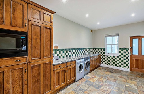 In the evening, come home to your house to host an extravagant dinner in the elegant formal dining room. Step inside and you’ll find yourself in a wonderful games’ room – the perfect place for a friendly game of pool or a competitive darts tournament. There is a bedroom that sits just off from this room, with a luxurious king-sized bed and its own en-suite shower room. Moving further in, you enter a large utility room, a great space to make sure that muddy boots and paws are clean, before coming to the beautiful country-style kitchen with a glowing wood burner and a large table for six. This space is perfect for those wanting to cook together, enjoy morning coffee whilst planning your day, or to enjoy the cosy log burner whilst reading a book. There are two large, welcoming lounges, great for multi-generational groups. A resplendent dining room with seating for 16 at its large dining table completes the ground-floor layout. Two separate staircases lead from this floor – one to the basement and one to the first floor. In the basement you’ll find a wonderful media room where you can enjoy fun movie nights with your friends and family, as well as a king-size bedroom and a shower room. Upstairs on the first floor you’ll find the remaining bedrooms: two king size, on four poster king size with en-suite and two triples completing the first-floor layout there are two family bathrooms - one large spa-like bathroom with a shower/sauna, and bath; and one with a bath and shower.
