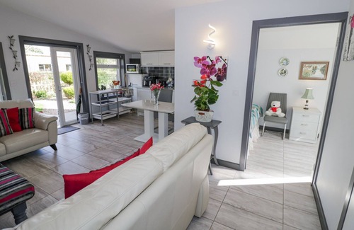 Amenities: Electric central heating. Electric two-ring hob, combination microwave with oven and grill, Dual Air-Fryer, fridge with icebox, washing machine, Tumble dryer, dishwasher. TV with Freeview, USB sockets in walls, DVD player, Kettle BBQ radio, a selection of books and games and WiFi. Highchair and travel cot available on request. Fuel and power inc. in rent. Bed linen and towels inc. in rent. Driveway parking for two cars with electric vehicle charger - payment for the use of this is required, and to be settled with the Owner directly. Enclosed private garden with gravelled area and patio with outdoor furniture. One well-behaved Dog is welcome & Dog bed is provided. Sorry, no smoking. Shop 0.6 miles, pub 0.9 miles. Pathway to the property is wheelchair friendly.