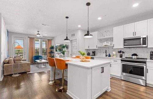 Nestled in the heart of charming Winter Garden, this beautifully designed 2-bedroom, 2-bath apartment offers the perfect blend of modern luxury and small-town charm — just 20 minutes from Walt Disney World and Orlando’s top attractions.