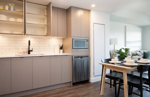 Experience the best of Kelowna at our newest DOWNTOWN building, Brooklyn on Bernard! Our thoughtfully designed, fully furnished 1-bedroom apartment with a queen-sized bed and a queen-sized sofa bed in the living room make it easy to accommodate friends or kids.