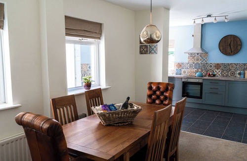 Amenities: Central heating. Electric oven and hob, microwave, fridge/freezer, washing machine, dishwasher. Smart TV, a selection of books, WiFi. Fuel and power inc. in rent. Bed linen and towels inc. in rent. Highchair and travel cot available. Permit parking for 1 car. Non-enclosed front garden with gravel and patio. Enclosed rear garden with patio, lawn, and furniture. Two well-behaved dogs welcome. Sorry, no smoking. Shop 0.1 miles, pub 0.2 miles, beach 0.4 miles. Note: There is a charge of £25 if the parking permit is taken. Note: There is a step up to property, please take care