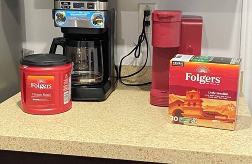 Basic necessities are there when you arrive. The kitchen is fully stocked with the essentials for breakfast (coffee, tea, sugar, creamer, oil, salt and pepper). We have a full-size oven, a large fridge, and countertop appliance. You will find pots and pans, baking dishes, storage containers for leftovers, drinking glasses, dinnerware, cutlery, dish soap and dish towels