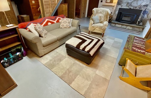 Charming Original Log cabin with open concept layout and wood burning fireplace for cool nights. Well equipped kitchen, dining and living space including pull out couch to make the most of movie nights. Walkout to "treehouse" balcony overlooking lake.