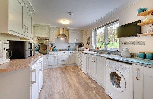 Amenities: Central heating. Electric oven and grill, gas hob, microwave, fridge, freezer, washer/dryer, dishwasher, coffee maker. Freeview TV with DVD player, CD player, digital radio, iPod/MP3 docking station, WiFi, hair dryer, iron, ironing board. Fuel and power inc. in rent. Bed linen and towels inc. in rent. Off road parking for one car. EV charging available. Enclosed garden with patio, furniture, and charcoal barbecue. Patio terrace with furniture. Two well-behaved dogs welcome. Sorry, no smoking. Shop 0.8 miles, pub 0.5 miles, river 0.1 miles, lake 1.4 miles. Note: Living/dining room overlooks owner's garden. Note: One step with grab handle from snug to terrace and garden. Note: Changeovers can be accepted on Mondays / Fridays / Saturdays between October to March. Between April-Summer, changeovers can only be catered for on Saturdays.