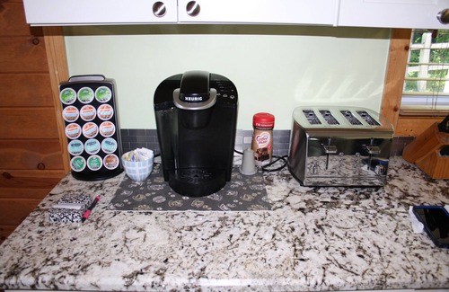 Kitchen: Well appointed including full-sized electric stove/oven, microwave, dishwasher, and the oh-so-important Keurig coffee maker. No "roughin' it" here.