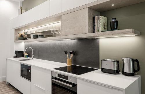 Food & DrinkTea/Coffee makerBathroomHairdryer, Toilet, Free toiletries, Private bathroom, Shampoo, Towels, Body soap, Shower, Toilet paperMedia & TechnologyFlat-screen TV, Streaming service (like Netflix), TV, Cable channelsGeneralCarbon monoxide detector, Iron, Fire extinguisher, Heating, Smoke Alarm, Air conditioning, Trash cansKitchenDishwasher, Oven, Stovetop, Microwave, Washing machine, Dryer, Coffee machine, Cleaning products, Refrigerator, Kitchenware, Wine glasses, Toaster, Electric kettle, Kitchen, Dining tableLiving AreaSofa, Dining area, Sitting areaBedroomWardrobe or closetAccessibilityUpper floors accessible by stairs onlyBuilding CharacteristicsPrivate apartment in buildingRoom AmenitiesSocket near the bed, Non-feather pillow, Clothes rackViewQuiet street viewPhysical distancingSingle-room AC for guest accommodation |