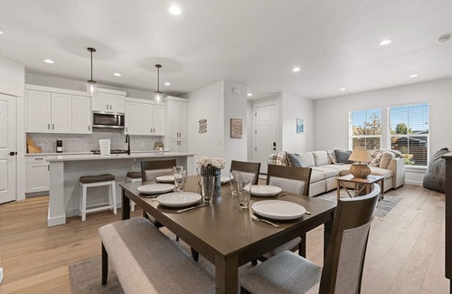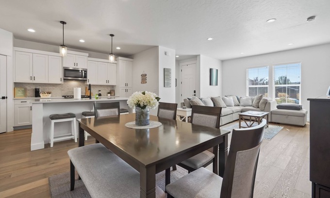 Discover your home away from home in our newly built, spacious 3-bedroom, 2.5-bath, two-story townhome, just under 2,000 square feet. Ideally situated in a central location for exploring Boise, The Grey Havens offers a serene retreat with a warm grey and blue color palette that creates a “relaxed beach vibe.” Nestled at the back of a private subdivision, this thoughtfully designed space accommodates groups of 1-12, ensuring comfort and style without compromising on functionality. Plus, there are no extra guest fees! Gated and heated community pool open May-September. Lots of lounge chairs, tables, umbrellas, clubhouse and rock wall shower. Kick back and relax-the pool is open 8am-10pm 7 days a week! Located 1 min walk from the property.