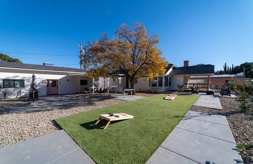 Create memories in our brand new, fully landscaped front yard that includes a covered, oversized dining room table (seats 12), Weber BBQ gas grill, corn hole set, ping pong table and a cozy fire pit. Take this all in while smelling fresh citrus growing in one of ours many fruit trees from white oleanders that surround The Grove. If the 3BD/2.5BA Casita is booked during your stay, the patio would then be a shared space.
