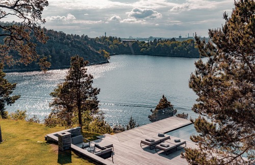 This luxury villa bathes in light and has a fantastic panoramic view over the Stockholm archipelago. Enjoy your evening drink by the infinity pool at sunset watching the archipelago boats pass through Höggarns Bay. From here you will reach Strandvägen in central Stockholm in 8 minutes by yacht.