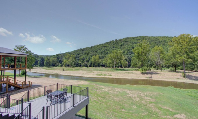 Elevated cabin on the Caddo River for a spectacular view. With the entire river facing wall of cabin glass, you have glorious view of the Caddo River from Living Room, Kitchen or any of the many decks & patios. Mere steps from getting your feet in the river, life doesn't get any better than this. Ideal for 6 adults, the rest of the beds are set up for the kiddos. The cabin is literally on the Caddo River, offering fishing, boating & swimming opportunities. Additional amazing fishing, boating & hiking are nearby. Albert Pike Recreation Area is 24 miles away for hiking, 11 miles to Kirby AR for lake fishing, boating, skiing, etc & 30 miles to Hot Springs AR for boating, skiing, fishing, hiking, shopping and more.