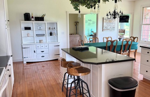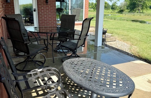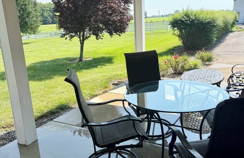 Escape to this peaceful farmstead just outside of town for a truly relaxing getaway. The back porch is great for watching stunning sunsets over the pond and overlooking the active horse pasture! Stocked with top-quality fishery, it's a paradise for fishing enthusiasts. Nestled right up the road from Hanover College, 10 minutes from Historic Downtown Madison and Clifty State Park, and just 3 minutes from a local store. Book your stay now and enjoy the tranquility of this unique retreat!