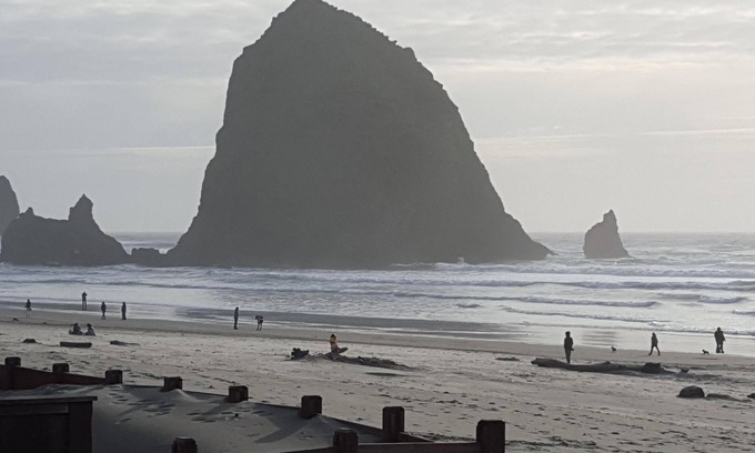 Spectacular ocean front views! You can't get any closer to the beach than this classic ocean front Cannon Beach home. Absolutely the best location in Cannon Beach. Enjoy the rustic charm of this classic home located on the beach in mid town just steps to many of the great Cannon Beach restaurants, shops, and pubs. Short walk to Haystack Rock and downtown Cannon Beach. Original Knotty Pine and Cedar throughout the home. Recent upgrades include refinished hardwood and new tile flooring, new Pottery Barn furniture, new kitchen and bathroom quartz counter tops, new stainless steel appliances with double oven, new windows, new heaters and electrical, and new siding. Generous space with 5 bedrooms and 3 full bathrooms. Ocean front and beach front views from most of the rooms in the house. Enjoy storm watching and sunny days while sitting in front of a crackling fire in the river rock fireplace or in the ocean front sun room. Well equipped kitchen with all the amenities you will need. Huge patio overlooking the beach and ocean for enjoying the spectacular views, relaxing in the sun, barbecues , or people watching. Please note that the master bathroom has a bathtub only with a shower wand for rinsing off and does not have a full stand up shower. It's a little rough around the edges but you won't find a more charming, comfortable, and spacious family home anywhere in Cannon Beach. "If you were any closer to the beach you would be sleeping in the sand" Please go to Surfline.com for a live camera feed showing the view from our house and type in Cannon Beach Oregon. Also check us out on Instagram! @TheHaystackHouse. Please note that per our policy, cancellations will receive no refunds or rescheduling.
