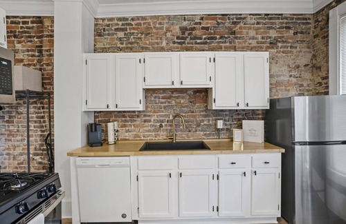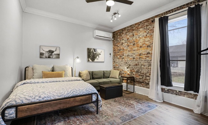 This beautiful home was built in the early 1900s. It has since been converted into a six unit building. Unit #6 is a BEAUTIFUL studio space with tons of exposed brick, plus a spacious bathroom and kitchen. Fully furnished to make it both stylish and cozy, this unit has everything you need for your stay. Close to downtown, walking distance from West Six brewing, Jefferson Street coffee, County Club restaurant and more.