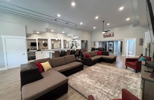 This beautiful downtown vacation spot is the perfect destination for an intimate getaway or group gathering! You'll have all the amenities of home, as well as a Wii console, Table Tennis, Giant Connect Four, and two 70" HD TVs! Walk to the theatre and local stores, and entertain guests in this giant space. This is the perfect place to relax, escape the hustle and bustle, and have fun!