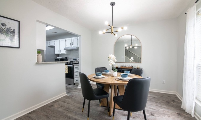 Welcome to your home away from home! This spacious, beautifully renovated townhouse features stylish furnishings, warm natural light, and all the comforts needed for a relaxing stay. With 2 thoughtfully designed bedrooms, 1.5 updated bathrooms, and multiple cozy lounge spaces, this home is perfect for families, professionals, or small groups.
