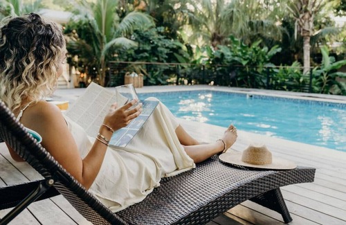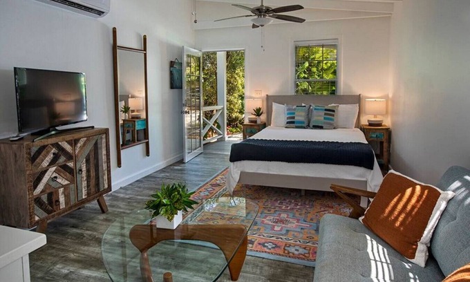 Escape into a lush oasis. This cottage is perfect for families and couples looking for a luxurious laidback local vibe. Just steps to the beach, and with direct access to the pool, lawn, and pavilion area, there is no shortage of spots to lay back and relax or have a blast.
