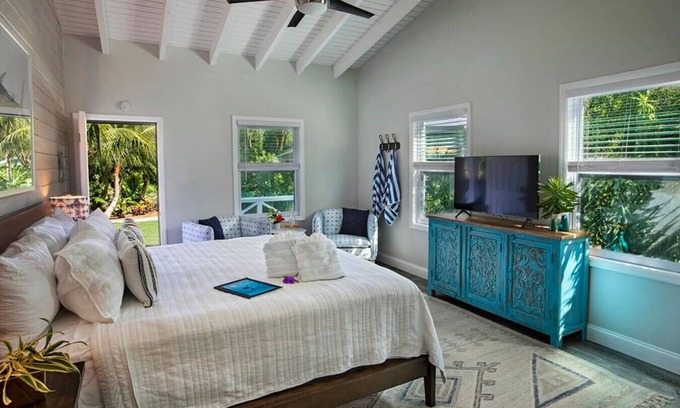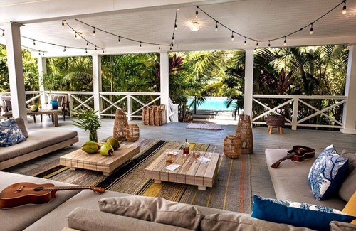 Escape into a lush oasis. This cottage is perfect for families and couples looking for a luxurious laidback local vibe. Just steps to the beach, and with direct access to the pool, lawn, and pavilion area, there is no shortage of spots to lay back and relax or have a blast.