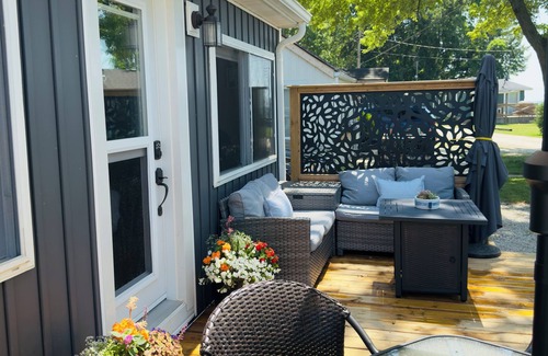 This cottage is nestled along the shores of Lake Erie in a small quite cottage community, right in the heart of epic wine Country. This cottage is perfect for a single person or a couple travelling to the area. Offers a beautiful view of Lake Erie, nice treed lot with firepit and hammock. Bikes for your enjoyment, if you wish to bike along the shore to wineries, beach, and local produce stands. The cottage is centrally located between Historical Amherstburg, beautiful Kingsville and Point Pelee National Park. There is so much to explore in the region. Fine dining, golf, bird watching, casino and so much more. Not wanting to tour around no problem, stay back and enjoy the many amenities that the cottage has to offer. Sit on the beautiful large deck to eat, have coffee, read whatever your pleasure maybe. Relax in the large treeed lot or play some yard games, hang out in the hammocks, great place for a nap while listening to lake. Many beautiful birds and if you are lucky you will see some amazing bald eagles. Nothing like ending your day sipping your favorite beverage by camp fire, not into building a fire. No problem sit lakeside and enjoy the fire table, best place to see the sunset over Lake Erie. The best part is retiring for the night with the windows open enjoy being lulled to sleep with the crashing of the waves and the beautiful lake breeze. It doesn’t matter where you are inside the cottage you will have an amazing view! Looking for a true cottage experience then this is it.