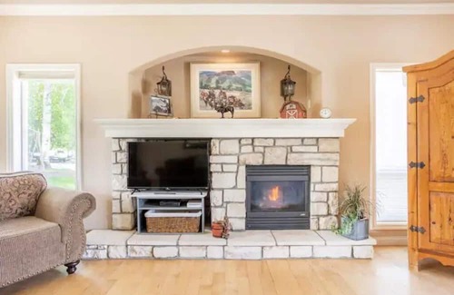 The house is equipped to be your home away from home for the length of your stay. Complete cooking and serving utensils are provided as well as laundry facilities, Central vacuum and cleaning supplies. There is a room with a desk and guest access to high speed internet and a monitor and printer for any office work that just has to get done. TV's up and downstairs have local TV stations and streaming services with Netflix, YouTube and others.