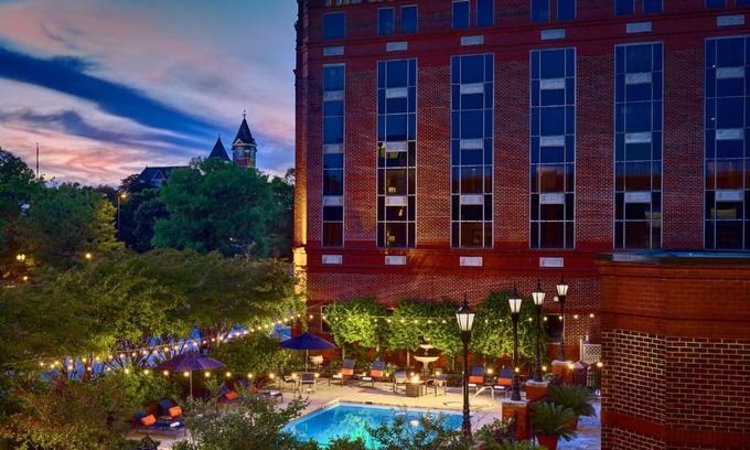 Located on the campus of Auburn University, this hotel offers an outdoor pool, a restaurant and a lounge with live jazz music on the weekends. Every room features a 32-inch flat-screen cable TV. A microwave, fridge, and coffee-making facilities are provided in The Hotel at Auburn University's contemporary rooms. They have free WiFi and MP3 player plug-ins. The bathroom includes a rainfall shower and robes. Auburn University Hotel guests can enjoy a daily breakfast buffet. Ariccia Cucina serves seasonal Italian specialties and offers a terrace. Piccolo serves appetizers, desserts and specialty cocktails. The Jule Collins Smith Museum of Fine Art is just 1 mi from Hotel Auburn University. Auburn Links at Mill Creek is 6.4 miles away.