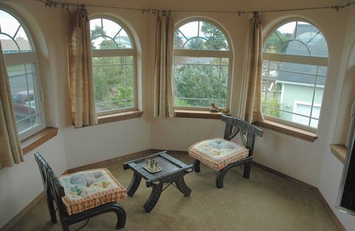 1800 sq ft, double story, elegant, well furnished, antique furniture, doors and furnishings from India. Spectacular views of Mt. Baker, the Olympics and the lighthouse. Ducks on the canal, bird life around the property. Stone waterfall, genuine wooden sauna and cedar hot tub on the deck. Garden with rhododendrons, summer wild flowers and lavender.