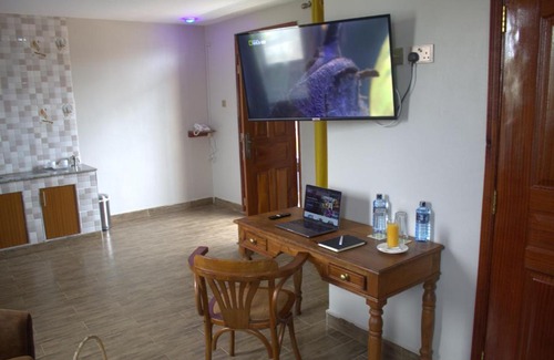 The Hydeout Riviera has a restaurant, fitness centre, a bar and shared lounge in Kisumu. 15 km from West End Shopping Mall and 15 km from Kisumu Municipal Market, the property provides a garden and a terrace. The accommodation features a 24-hour front desk, room service and currency exchange for guests. All rooms are fitted with air conditioning, a flat-screen TV with satellite channels, a kettle, a shower, slippers and a desk. Some rooms also boast a kitchenette with a fridge. The rooms have a private bathroom, a hairdryer and bed linen. The resort offers a continental or buffet breakfast. The Hydeout Riviera offers a children's playground. The area is popular for cycling, and bike hire and car hire are available at the accommodation. Milimani Shopping Centre is 16 km from The Hydeout Riviera, while Ecobank United Mall is 16 km from the property. The nearest airport is Kisumu International, 12 km from the resort, and the property offers a paid airport shuttle service.