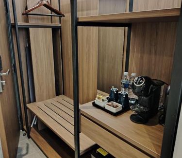 Food & DrinkBottle of water, Tea/Coffee maker, MinibarBathroomHairdryer, Toilet, Free toiletries, Bidet, Conditioner, Towels, Shampoo, Toilet paper, Shower, Bathtub or shower, Body soap, Private bathroom, BathtubMedia & TechnologySatellite channels, TV, Telephone, Flat-screen TVGeneralAir conditioning, Iron, Key access, Hardwood or parquet floors, Smoke Alarm, Tile/Marble floor, Ironing facilitiesLiving AreaSitting area, DeskServicesWake-up serviceKitchenCoffee machine, Electric kettleBedroomLinens, Wardrobe or closetAccessibilityAccessible by elevator, Entire unit wheelchair accessible, Upper floors accessible by elevatorRoom AmenitiesClothes rack |