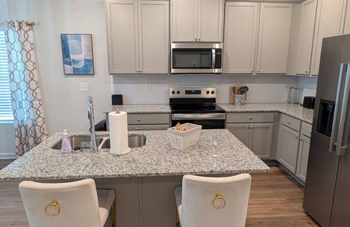 This brand new 3 bedroom and 2.5 bathroom townhouse is located approx 24 mins from Atlanta in the quaint town of Jonesboro; the home will accommodate you & your guests with plenty of space. With quick access to the highway, you are a skip away from restaurants, shops, gyms, & downtown Atlanta. Hartsfield Jackson Int'l airport is conveniently only 15 mins away with a convenient location near the Motor Speedway.