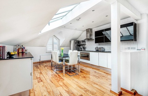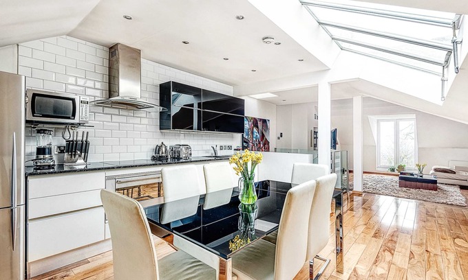 With a sleek kitchen and spacious living area, this pad is the ultimate spot for a guys’ getaway, but couples and families will love it too! A bright, open-plan duplex in the heart of Hampstead, perfect for hosting game nights, lounging on the oversized sofa, or kicking back to watch a football game in style. The minimalist, classic bedrooms keep things effortlessly cool, and the functional design brings that modern edge. In the heart of the charming village, with easy access to public transport